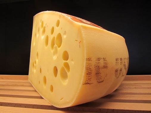 L'Emmental est un fromage suisse à pâte dure dont le nom provient de la vallée de l'Emme, une région à l'est du canton de Berne. La présence des trous est due à d'infimes particules de foin qui s'infiltrent dans le lait lors de la traite des vaches. Ces corpuscules émettent des gaz lors du processus de fermentation et sont à l'origine des trous.