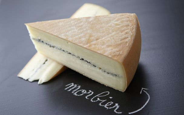 Le Morbier est un fromage au lait cru de vache, à pâte pressée non cuite, fabriqué dans le massif du Jura. Historiquement les agriculteurs préparaient le fromage en deux fois. Il confectionnaient un caillé qu'ils moulaient et qu'ils recouvraient d'une fine couche de cendre de bois pour le protéger. Le lendemand matin, ils ajoutaient le caillé issue de la deuxième traite. Aujourd'hui, cette raie sombre reste la signature du Morbier.